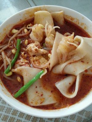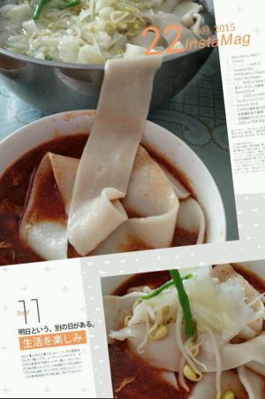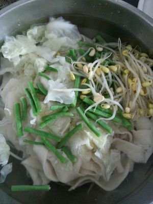 夹一根面到自己碗里,在来点菜,哇哇哇!面条很长,千万不要贪心夹多,只一根就好,有时一根你的碗都放不下,哈哈!