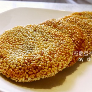 包好豆沙馅 放到白芝麻上按压 两面都要粘上满满的芝麻