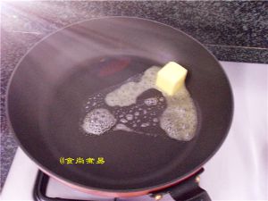 不粘锅烧热,放入黄油;