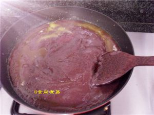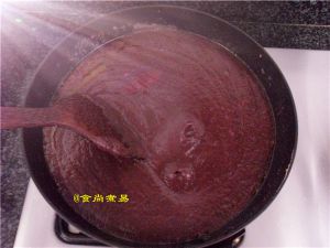 倒入红豆泥,小火,用锅铲不停慢慢搅拌,以免糊底;