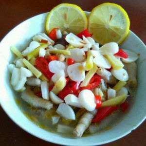 柠檬切片,我留了两片拼盘,其他的都把汁挤出来,滴在汤里面,等到稍微冷了,放到冰箱冰一下下味道会更好,全程就拍了这张照片