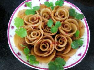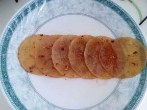 腌好的萝卜片,排排队,6片一组,会玫瑰花馒头的这步不陌生