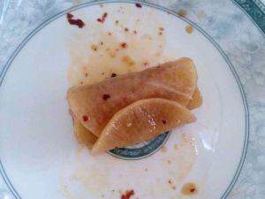 放1勺半生抽,半勺芝麻油,少许糖,1勺醋,半勺辣椒粉,1勺辣椒油拌匀放冰箱冷藏一小时。
