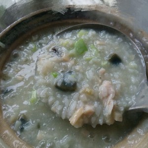 大米煮的差不多了,米粒基本软了,放入杏鲍菇粒一起煮,煮大概10分钟,放入鸡腿肉(不要倒入以防把那些汤汤汁汁也倒进去),放入皮蛋,放入葱白,留下葱绿!煮5分钟大概,自己掌握时间,要用勺子从锅底翻,以防粘锅!可以适量放点盐,随喜好定!一定要小火慢熬!,看肉熟了,米很烂了,关火!在放入葱绿!看着更有食欲