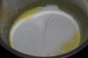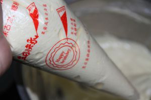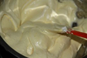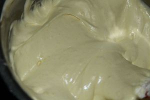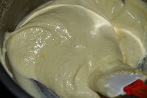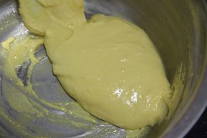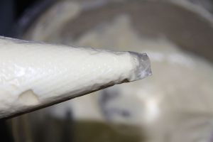 翻拌均匀后的面糊,不会随意流动,有膨松感;
