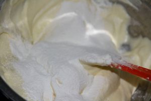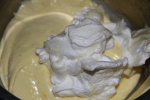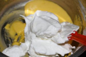 分两次筛入剩下的低筋面粉,快速而小心的翻拌均匀;