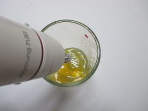 将鸡蛋去壳放入料理杯中,加入绵白糖开启搅拌棒一档约十秒搅打均匀。