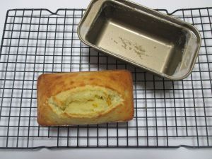 蛋糕出炉后,脱模置于烤网上晾凉,切片享用。
