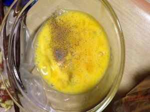 鸡蛋打发,加胡椒粉和盐。挤点柠檬汁
