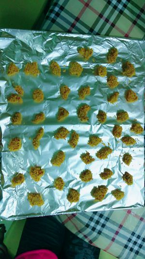 烤箱180度,上下火,定到17分钟,2分钟后放入,15分钟后香酥鸡米花就烤好啦~