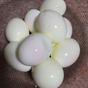 蛋用清水煮六分鐘,撈起用冷水浸泡,輕輕將殼剝掉,備用。