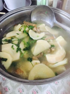然后把河蚌和冬笋全部倒入锅里开始煮,加入黄酒,生姜,油,盐,鸡精,煮20分钟左右,待看到汤为白色为好,再加入适量蚝油,非常的鲜