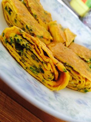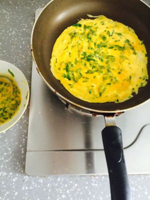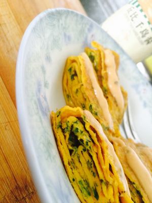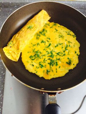 然后将第一层卷起来 倒入第二层蛋液 包包括后面也是这样 切忌一定要小火慢慢来