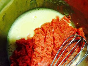 牛肉剁碎(或牛肉馅),料酒、盐、胡椒粉、香油搅匀!一边鸡蛋、生粉打匀,再和肉馅顺时针搅拌上劲!