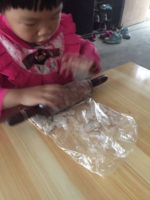 撕小点,装袋擀,再撕就容易点。太美味,宝边做边吃了很多。
