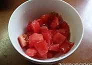 番茄洗净切小丁,葱切葱花,姜切片,大蒜切片