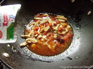 加入扁豆条和土豆条,再适当加些水,总量差不多400毫升