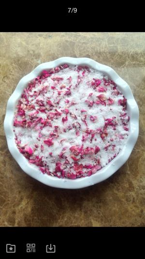 用干净无水的容器操作。按一层花瓣,一层糖的顺序,将原料铺在里边。