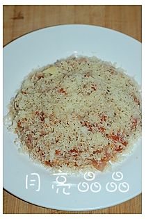 装盘,马苏里拉芝士刨成丝,均匀撒在表面,入预热好的烤箱,200度烤15分钟左右,芝士上色即可。
