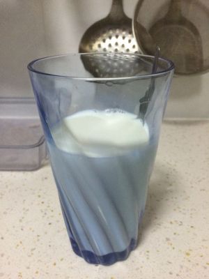 牛奶用微波炉加热40s,放一勺蜂蜜,搅匀。