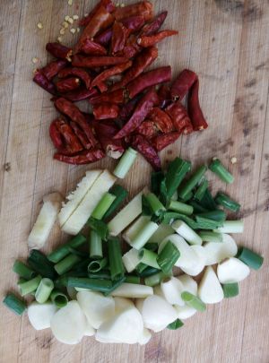准备葱姜蒜,干辣椒