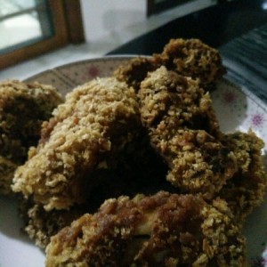 当油冒气泡时,调成小火,放入鸡翅,炸至两面金黄既可
