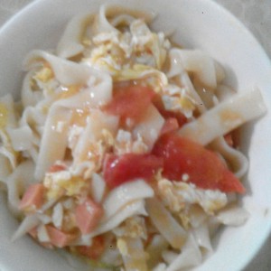 7.锅里烧开水之后开始下面,多煮一会。记得要搅几次。在这里大家可以根据个人喜好在锅里加入青菜菠菜或者生菜之类的,