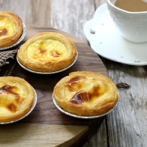 在烤盘上摆好速冻蛋挞皮,倒入蛋挞液,八分满即可,不需要全满