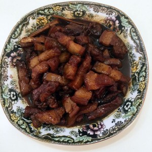 七成熟放老抽(多炒一会、这样肉里的油可以炒出些吃起来不腻)