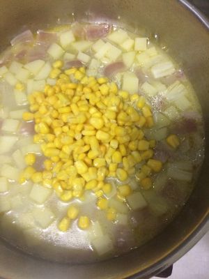 将甜玉米粒倒入(玉米粒剩少许在碗里)