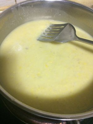 如果觉得汤汁里有粗汁可以出锅时过漏一下,然后再将剩下的玉米粒放入碗里,一碗爽口细滑的土豆玉米浓汤就做好了。