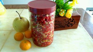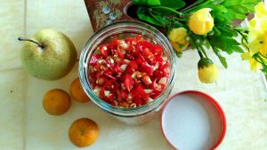 将拌好的辣椒放进一个无水无油的玻璃瓶。