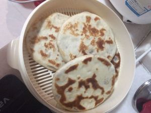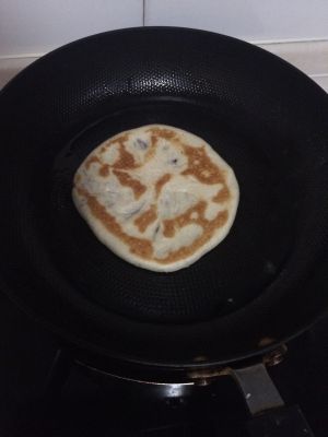 平底锅刷适量油,面饼有鼓起来两面金黄,就好了