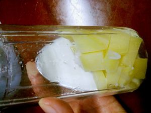 土豆过水煮熟后,加入牛奶和盐,搅拌机搅拌成土豆泥。 绵绵的感觉不错。