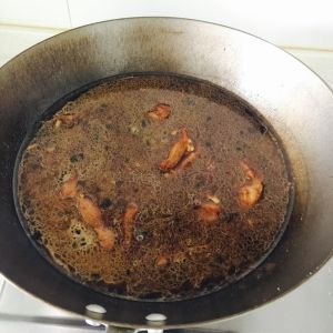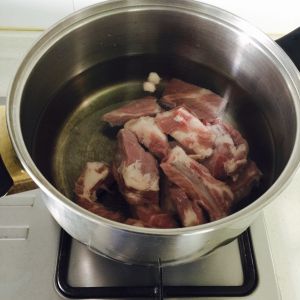 倒入水,需要没过排骨。大火熬制二十分钟。