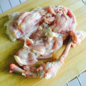 鸡腿肉沿着骨头慢慢用剪刀把骨头剔下。