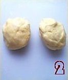 将面团均分为两个小面团,分别擀成2mm厚的薄片;