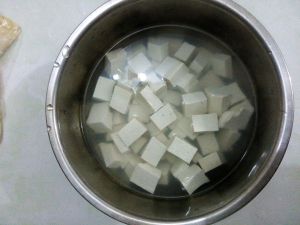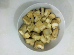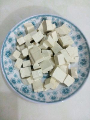 白豆腐清水冲洗之后,切成两厘米左右方块