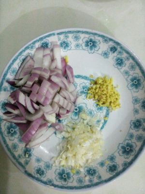 把洋葱切小块,葱姜切小丁