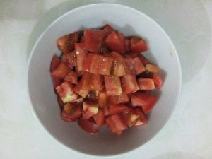 西红柿切丁(如果不喜欢西红柿皮的,可以用开水烫下去皮再切)