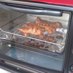 除蜂蜜以外的所有辅料混合,均匀涂抹在五花肉上面,放冰箱一夜,可以令五花肉更加入味,烤箱上下管200度,放中层烤20分钟,反面再烤15分钟,最后的10分钟两面都要涂抹蜂蜜