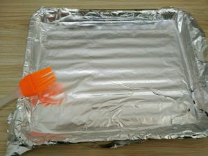 烤盘铺上锡纸并将烤箱预热180℃15分钟