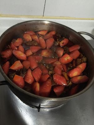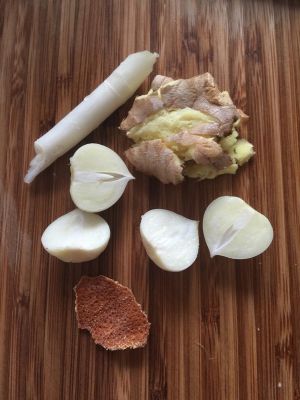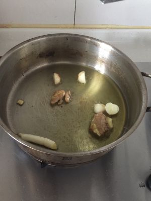 下姜葱蒜炒香,再下豆瓣酱炒香