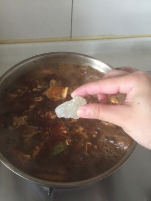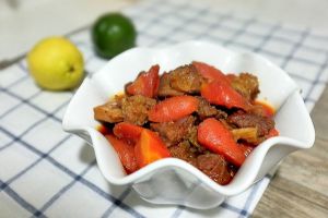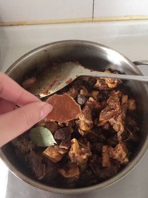 下牛肉爆炒一下,加陈皮,这是让牛肉能更快香软的秘密喔,也不能太多,不然会太抢味