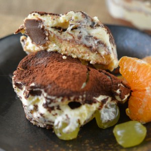 9,再放入手指饼干,挤入最后的奶酪糊,筛可可粉,盖好盖子冷藏4小时