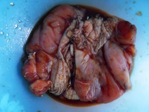 鸡腿洗干净去骨,上面用牙签扎一些洞