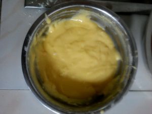 首先取两个鸡蛋,清黄一定分好!蛋黄里放入调和油面粉10克左右白糖牛奶!我没分次序一起放的搅拌均匀就好了