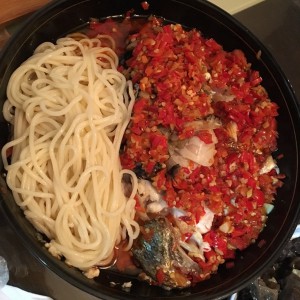 可以煮些面条放入汤汁中,面条吸取鱼汤,面条特别好吃。