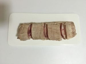 在瘦肉一面切几刀,为了接下来腌制入味。