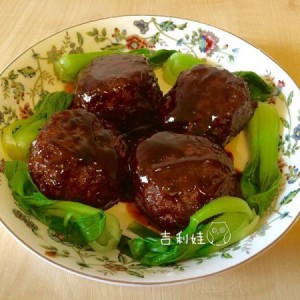 小白菜焯水,摆盘,放入丸子浇汁即可,是不是让人很有食欲